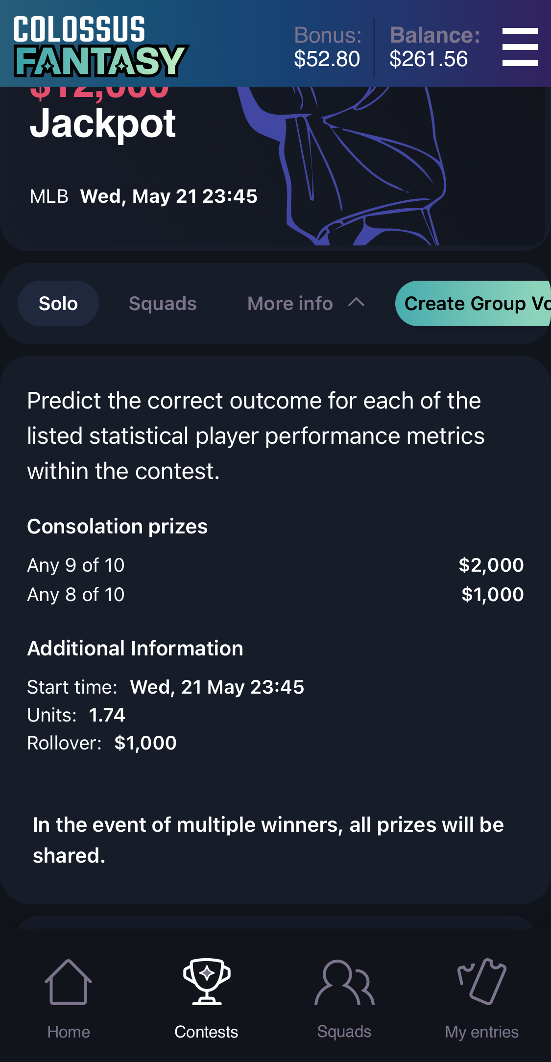 If the main prize for a contest is not won, we carry forward the stakes contributed into that contest to a future equivalent contest and so on indefinitely until the contest is won. This process and the relevant amount carried forward are referred to as a “rollover”. You can see any current rollover amounts for a contest by clicking on “More info” within the contest header.